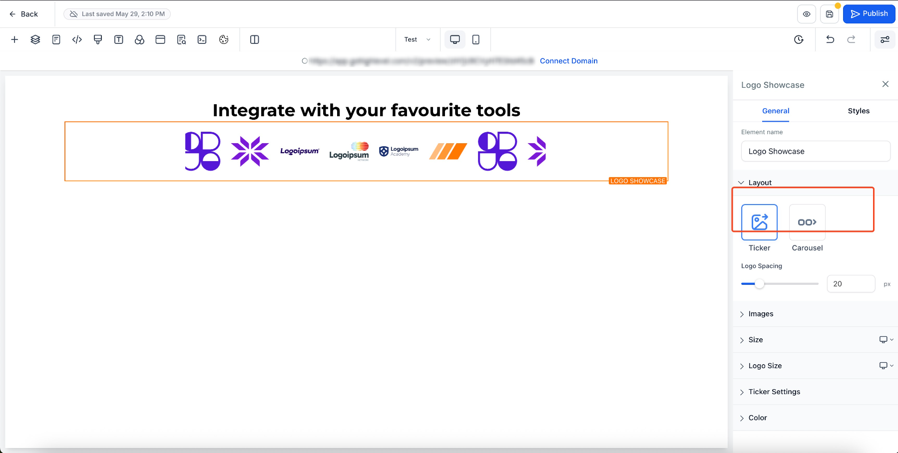 A dynamic new way to spotlight your client logos, partner brands, or certifications — now available in the builder with two powerful display modes and a sleek customization panel!
