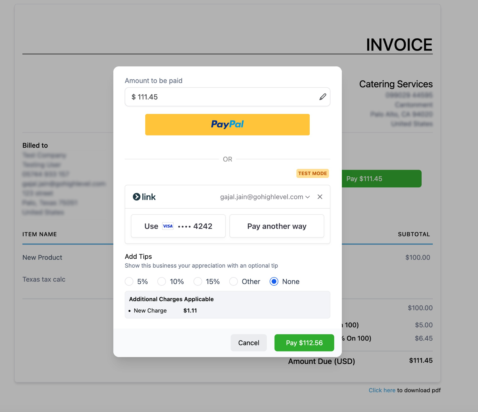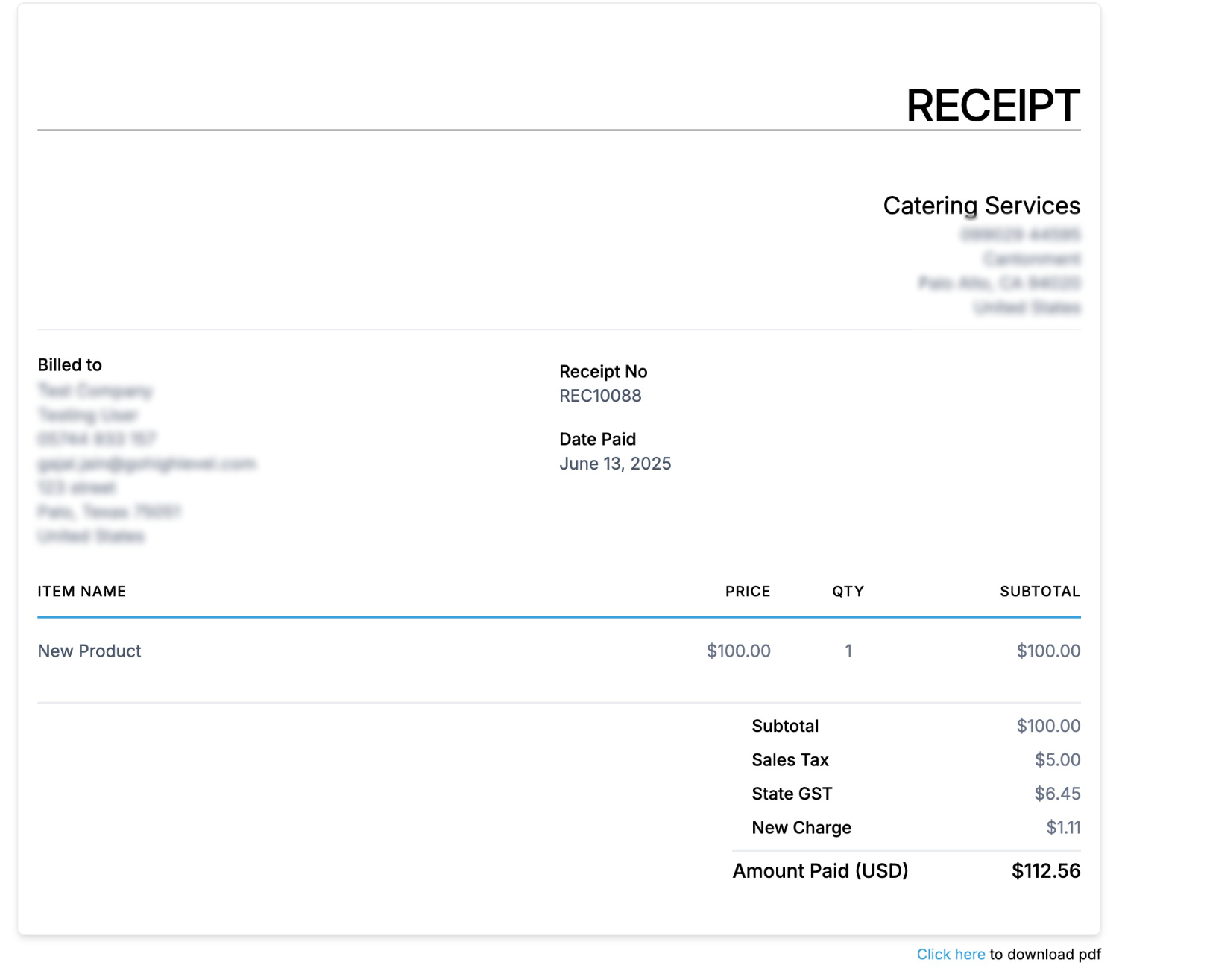 • See the fee as a distinct line item during checkout or payment (in case of Invoices) and on Transaction Receipts.