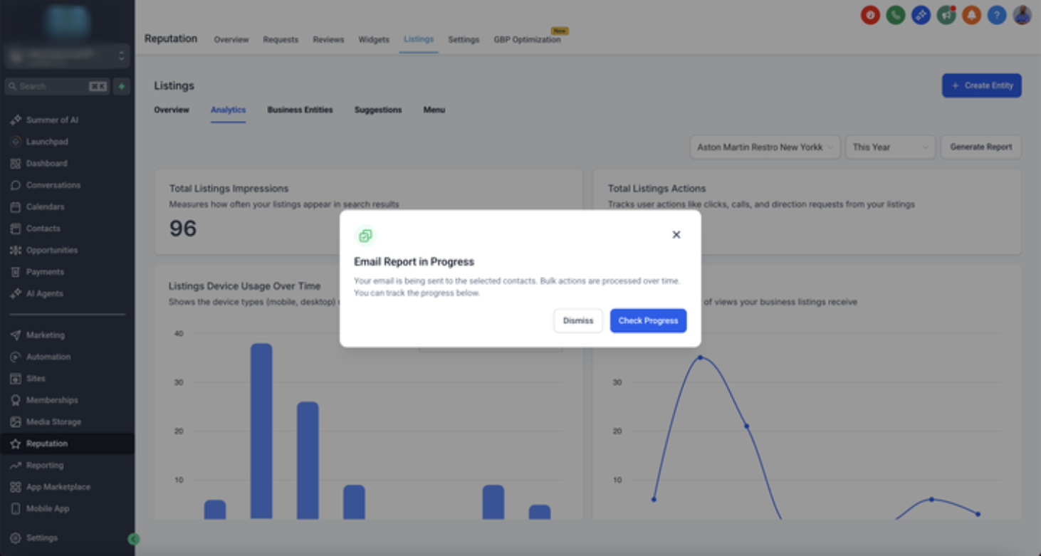 - Click “Generate Report” → Select either:All Entities(if no mix of Uberall/Yext), orA Single Entity