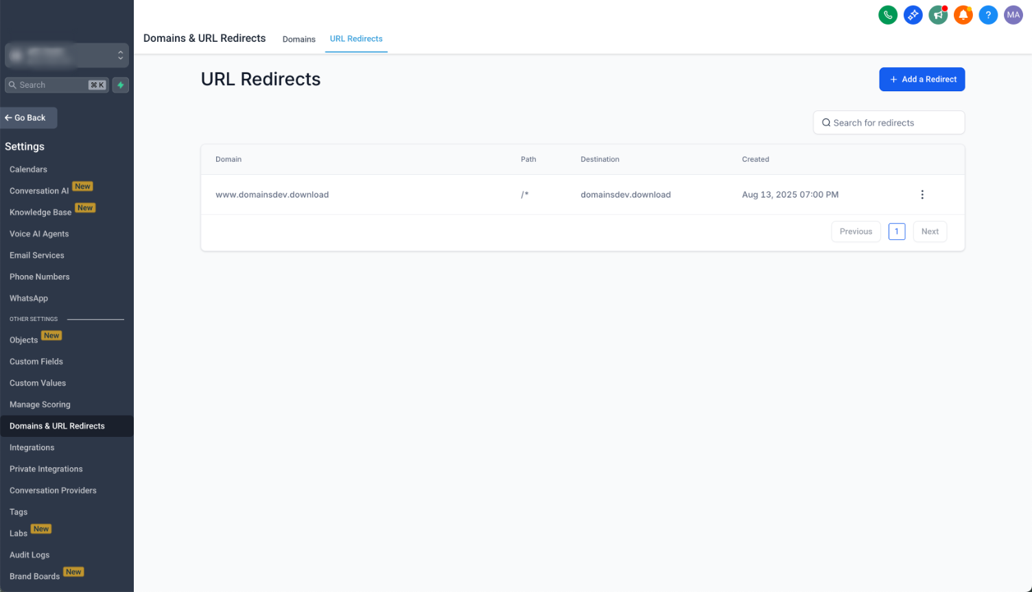 This update simplifies domain-related workflows, improves navigation clarity, and ensures that domains and redirects are managed in context. By consolidating these sections, users gain a unified view that reduces confusion and saves time.