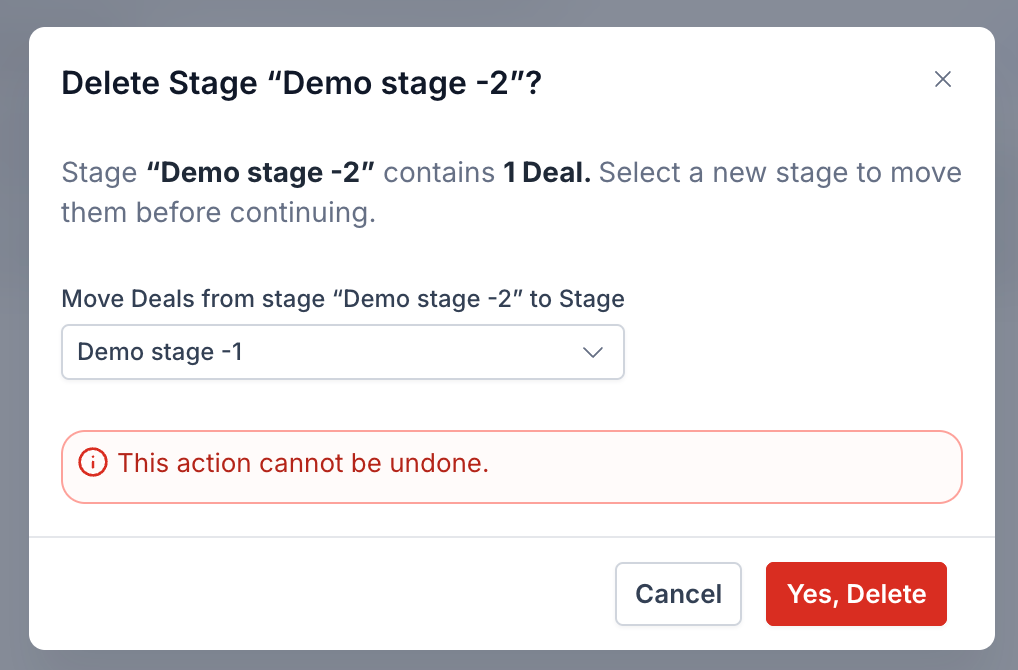 When deleting a stage, you can now move all opportunities to another stage of your choice.