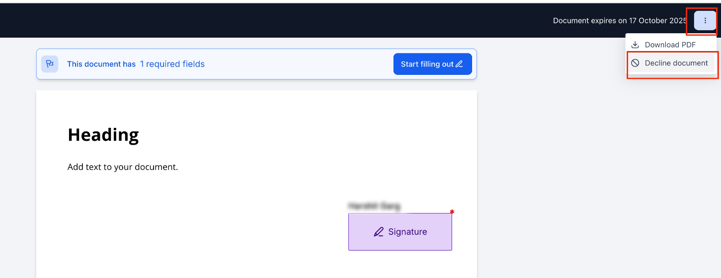 - Recipients can now Decline a document, select reasons, or add notes.