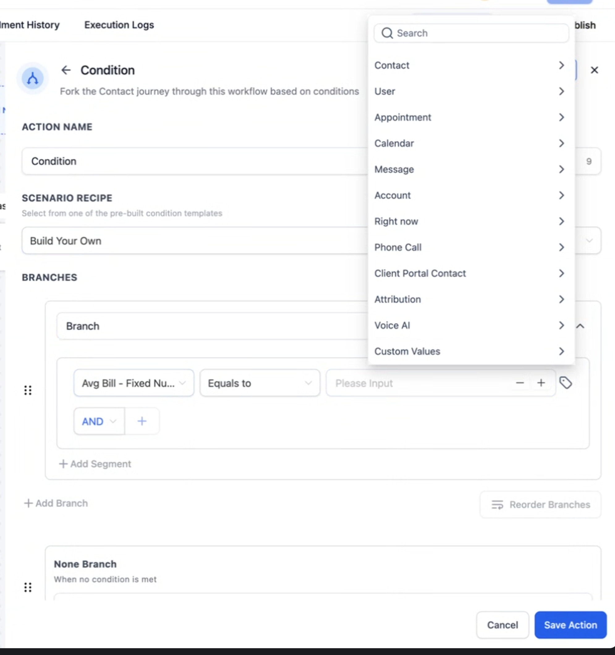 e action in your workflow.- In the condition row, switch the right-hand input to Dynamic Value, then pick the earlier step’s output. Choose the appropriate operator (number, date, or value).