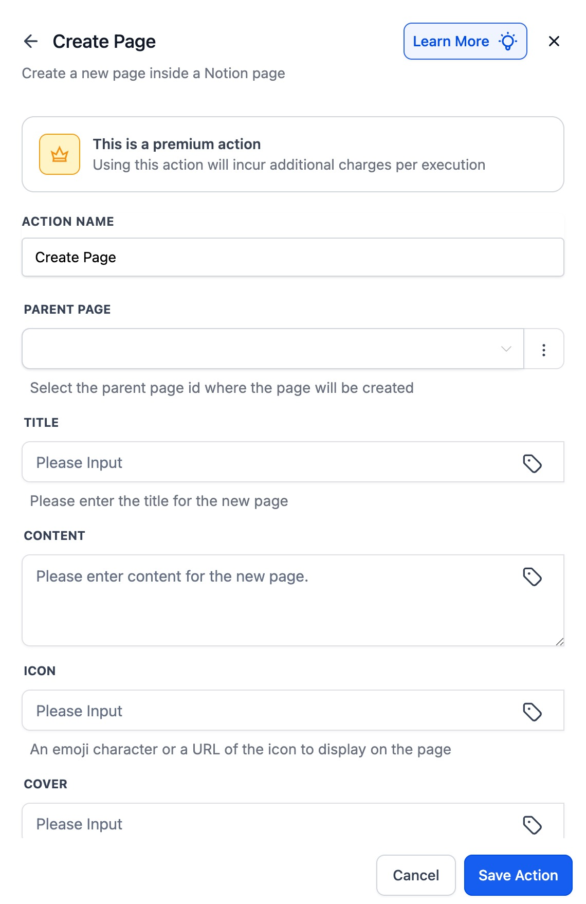 - If your Notion account is already connected, fields will appear for setup.