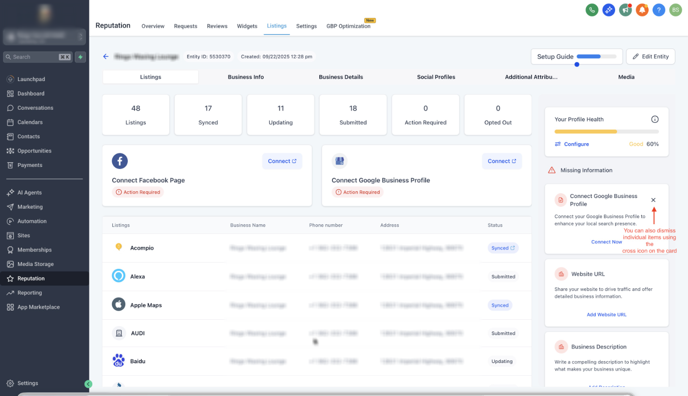 - In the “Missing Info” section, click "Configure" on the Profile Health Card