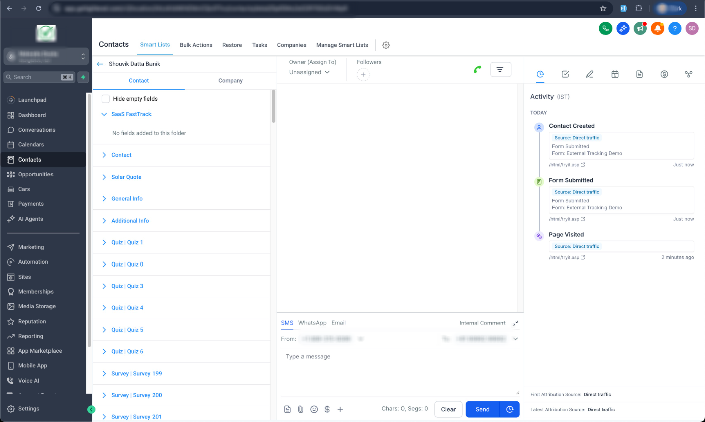 We’re excited to introduce Tracking Code. With this release, you can install a tracking script on any external website, validate the setup, and capture external form submissions directly into the platform. Submissions sync to Contacts with attribution details, making it easier to see where leads come from and act on them with automation.