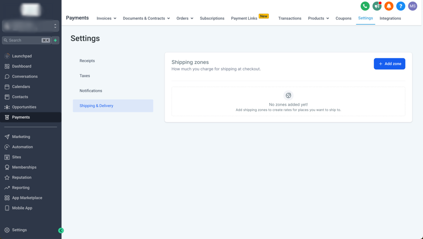 Navigate to your account > Payments > Settings > Shipping & Delivery.