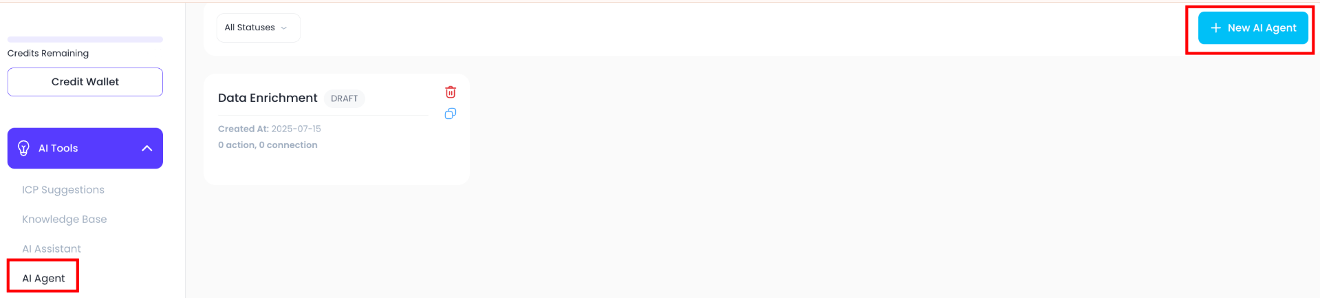 - Go to AI Tools → AI Agents in your Lead Generation Tool dashboard.