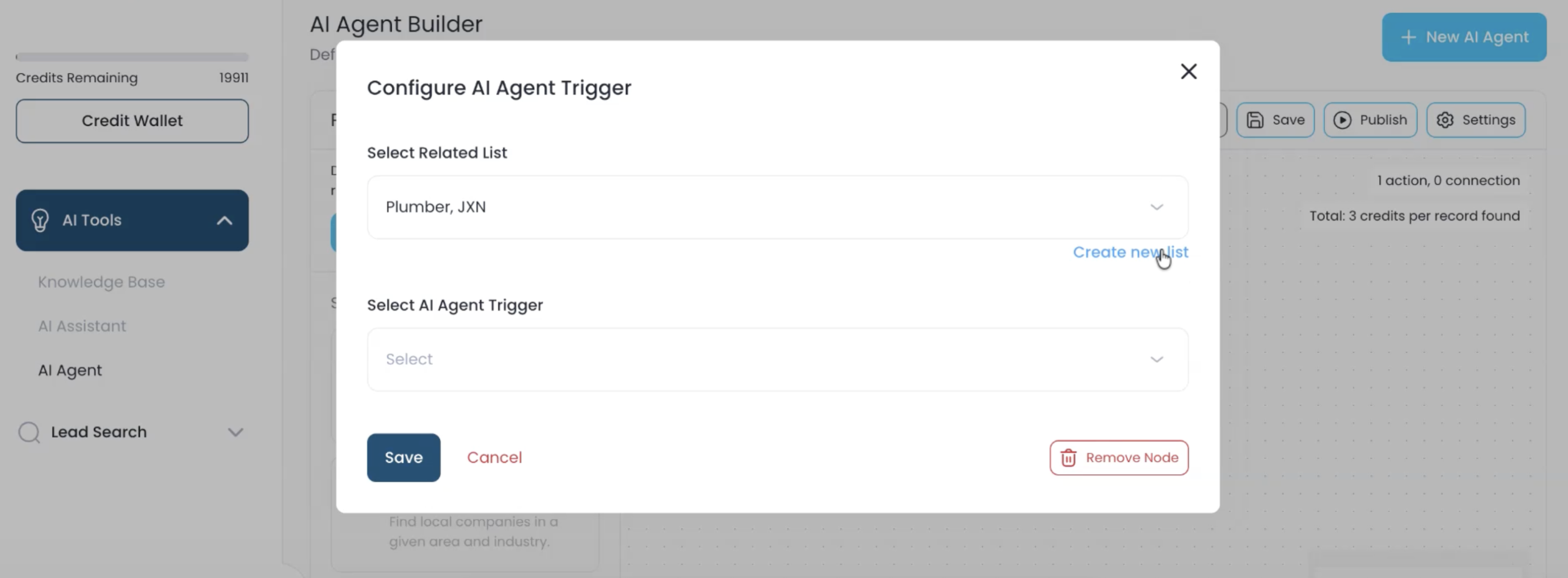 - Select a saved list for the AI agent (create a new list if needed).