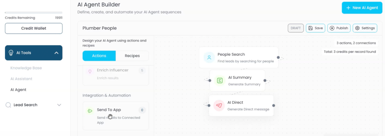 Learn how to build and publish your first AI Agent in the Lead Generation Tool. Automate tasks like generating summaries, sending direct messages, and syncing leads to your CRM for faster, efficient prospecting.